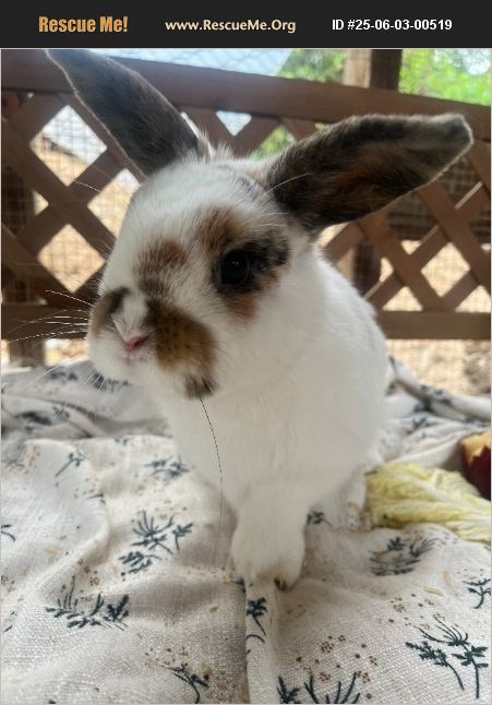 Persimmon is a full holland lop with the cutest airplane ears. She can be a bit shy at first but once she gets to know you she completely melts in your arms. She would love to go to a home with another bunny and loves to be spoiled