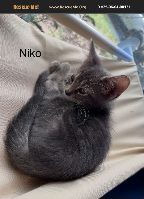 Niko is a charming, playful gray kitten with the softest fur and the biggest heart. Niko is curious, cuddly, and loves to nap in sunny spots or perch by the window to watch the world go by. He's social, litter-trained, and already used to household noises and gentle handling. ��%BD��%BDͻ Niko is being raised with love and care and is looking for a forever home where he'll be cherished as part of the family. Pre-adoption vet visit and basic health check are required. Please note: Filling out the application does not guarantee adoption - we are committed to finding the best match for Niko's happiness and well-being. Apply to adopt Niko here: https://forms.gle/gubUxPf2aFr6ukN88 and let Niko bring some purring joy into your life!