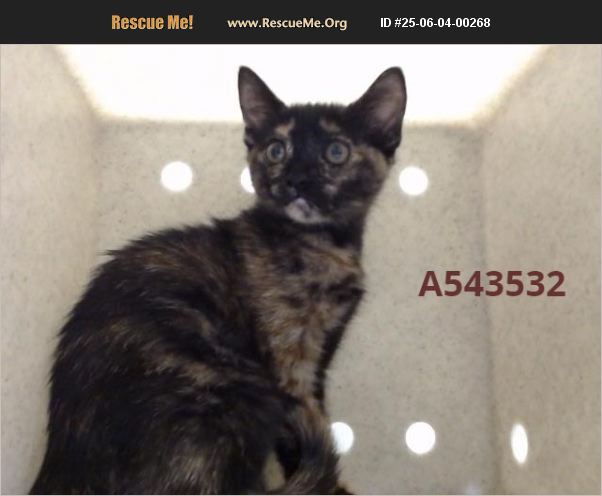 I am described as a female, tortie Domestic Shorthair mix. The shelter thinks I am about 13 weeks old. I weigh approximately 3.00 lbs. I have been at the shelter since Jun 03, 2025 and I may be available for adoption on Jun 10, 2025 at 10:00AM.