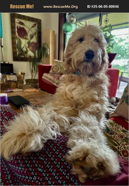 Ernie is a very large Golden retriever mix, I'm guessing with parts poodle and Great Pyrenees. Ernie was found abandoned in the Louisiana woods, hungry, scared, with fleas and ticks. Nobody claimed him and after a couple weeks in the finder's back yard, he was at risk of being taken to a high kill shelter, so I went and got him, had him fully vetted including treatment for internal parasites (hookworm and erlichia) and he's scheduled for neuter 7-19-25. He's been in my Florida home for 3 months, is healthy, has put on weight, and has learned inside manners with my dog, cat, and parakeet. Ernie is a very good boy, has not been kept in a crate, has not been destructive or caused problems in the home. He loves being outside, sniffing around, playing with my other big dog, then coming inside to sleep. He likes to steal socks from the laundry, and has nibbled on his foam mattress, but I expected some behavior based on what he's been through. I trust him in the house. Ernie SHEDS, he needs regular brushing, and a session at the groomer could help mitigate some of the fluff. I sweep/vacuum every day, do not want to lie. Maybe it's worse in spring, I can't say, but he sheds more than any doodle I've owned (I've had 3 in the last 20 years.) Do not apply if you want a hypoallergenic, non-shedding dog. This is a very loving, people-oriented dog who is good with other animals, but would thrive on being in a home with only human companionship. He loves attention, is kind and eager to please, will immediately be your best friend. He may be too much for small children as he's quite large, 80#, and sometimes does not recognize his own size. The first vet in Louisiana assessed is age to be around 3-4, but my Florida vet, who did a more thorough assessment, thinks he's under 2 years. I would like to see Ernie rehomed out of the Deep South, hence my listing him in Western Colorado, where I have property and know he'd be well-suited. I will bring him to Colorado for the right person, which I've done many times for rescued dogs. His adoption fee will be $550 to cover vet bills (I will provide records.) Ernie's heartworm and flea/tick preventatives (Proheart and Bravecto) iare good through August. To be considered as a candidate to adopt Ernie, you must be a stable, experienced dog owner with the resources to provide for a large-breed dog. You must own your own property, as landlords are increasingly wary of allowing large dogs in rentals. Please, if you're interested, provide as much personal information, as well as info about your household, property, schedule, and how you visualize Ernie being integrated into your daily life. Basically, write an essay and in return, I'll send photos, videos, answer questions, FaceTime, etc so we both feel confident that this is a forever fit. Thank you so much for considering Ernie.