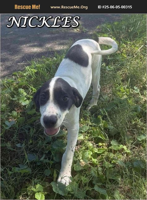 Nickels is a total charmer with a heart of gold. He was born 4/1/2025 and is thought to be an English Pointer/Lab mix. Nickels is a perfect mix of smarts, love and loyalty. He loves everyone, his affectionate side always shines through. Nickels loves leaning in for pets, giving kisses, belly rubs and all the toys he can get his paws on! If you're looking for a sweet, soulful boy who just wants to be loved Nickels just might be your match!