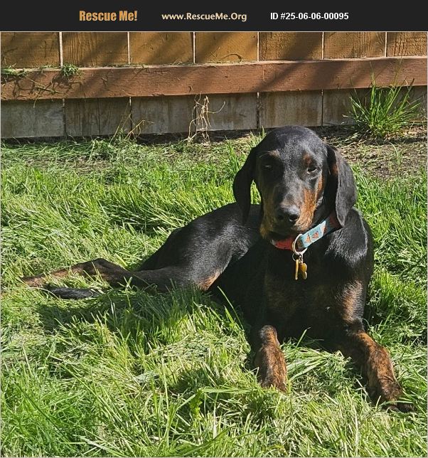 The dog lives in a mellow home. The dog is socialized with other dogs, adults and kids. The dog is timid. He likes to lean on your legs when you sit on the couch and likes attention when Indoors. He is neutered. He is two years old. He is a good size black/tan hound mix. He adopted from a local shelter. He is submissive and was likely from a horrible situation as he shakes or goes belly up around loud noises. He is likes to lay around.