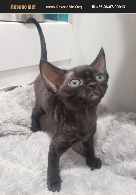 Dahlia is a purebred black curly devon rex kitten. She is 3 months old and current on vaccinations. She will be spayed before placement is finalized. She needs another cat or kitten in the home to play with as she doesn't like being alone. If you're interested in her please send an email.