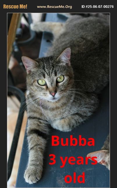 Bubba is a 3 year old tabby boy that weighs about 9 lbs. He is sweet and wants to be around whatever is happening! He was rescued with his brother Aron from animal control after they ran out of time. Bubba is good with dogs, cats and kids of all ages. He is litterbox trained, neutered, vaccinated, microchipped, dewormed and FIV/FeLV negative! His adoption fee is $125.
