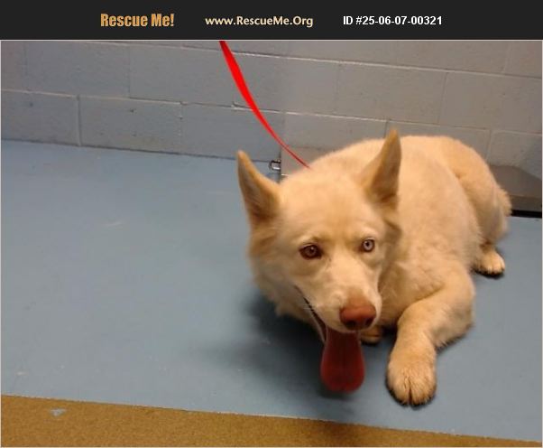 ID#A543686 I am described as a female, white Siberian Husky mix. The shelter thinks I am about 2 years. I weigh approximately 84.60 lbs. I have been at the shelter since Jun 07, 2025 and I may be available for adoption on Jun 14, 2025 at 10:00AM.