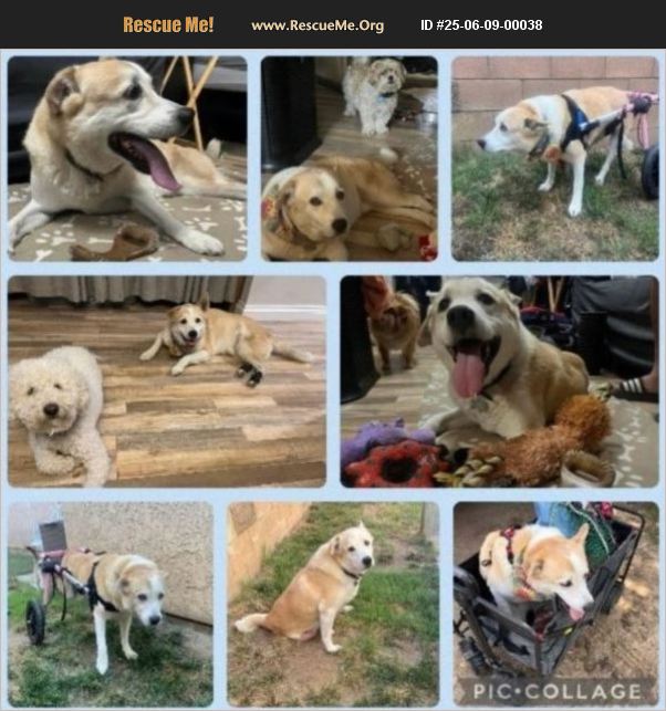 VIDEO INCLUDED: This sweet senior needs a miracle! Mazel-Tov, an 11-year-old Shepherd/Akita mix, has been through more than any dog should ever have to endure. While his owner was in the hospital, her daughter hired a pet sitter to care for him. When his owner tragically passed away, instead of taking Mazel in, her daughter decided she couldn't keep him because her dogs didn't like him. Mazel, who had already lost his best friend, was now facing the terrifying prospect of being put down. The pet sitter, heartbroken at the thought of this gentle soul being euthanized, stepped up and offered to foster Mazel temporarily, doing everything she could to find him a loving home. Time is running out and Mazel deserves more than this. This sweet boy is paralyzed but doesn't let that stop him from enjoying life. He has a cart to help him get around and still loves to play and explore. Mazel is potty trained, loves carrying his ball, and snuggling in his bed. Everyone who meets him falls in love. Despite his challenges, he is low maintenance and gets along well with other dogs. His joyful spirit remains strong, even though the world around him has crumbled. Mazel desperately needs a forever home. He's a loving, affectionate senior who deserves to spend his golden years in a home where he's cherished. If you or someone you know can open your heart to foster or adopt Mazel, please don't let his story end in heartbreak. Contact me at (951) 204-4011. Jennifer from Pumpkin Pawz Rescue would also like to help. You can also contact her at +1 (714) 366-8170. Please share his story and help us find Mazel a second chance at life. Let's not let him down. He deserves so much more.