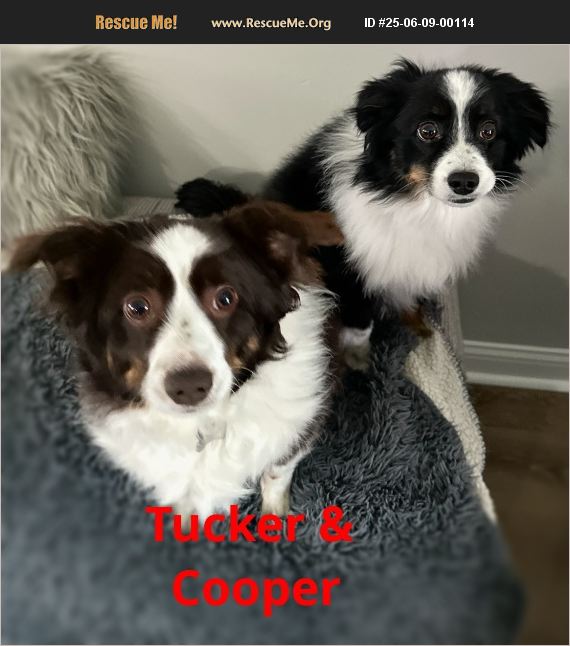 Tucker is a Mini and 15LBS, 8 YEARS OLD AND IS A RED tri WITH NATURAL BOBED TAIL Cooper is 7 years old, 13 LBS, and is a black tri. They have always been together and are very loving and loyal dogs. We must rehome them because our grandson is allergic to them. They are always fresh cut, see the vet regularly, and have all records to show from the date we received them from the breeder