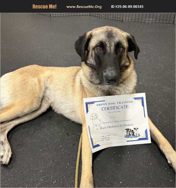 Lala is a certified Canine Good Citizen! She is smart, loyal and very responsive 2 year old , 65 lbs Shepherd mix (could be purebred Anatolian). She is spayed and housebroken. Lala loves the outdoors and is always ready for a walk be it in the busy neighborhood streets or park. She walks gently on a loose leash and always checks in with her human, should it be a dog or loud garbage truck pass her. Lala has basic obedience training and can stay in her 'place' for more than 30 seconds, even when the human goes out of sight. She enjoys puzzle toys and the kong and is very treat motivated, making training an enjoyable experience for all. Lala loves playtime with other fur friends and humans of all ages. Lala would thrive in a home that offers her both physical and mental stimulation- walks, puzzle toys, tricks, doggy playdates. Lala prefers lounging free when her humans have to leave her alone. Lala has completed a training program in Basic Obedience and Manners at Oriondogtraining.com and passed the AKC Canine Good Citizen test! Lala is a very social dog and loves everyone she meets. She will be perfect for a family with children and other dogs. She does have higher prey drive so no kitties. Want a fun, easygoing, social companion? Lala is your girl! WATCH HER VIDEO! https://www.instagram.com/reel/C87jW0wv6jF/?igsh=MzRlODBiNWFlZA==