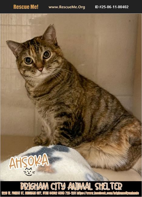 Check out Ahsoka! Ahsoka is a stunning girl with the biggest eyes and an even bigger heart. She came to the shelter when her owner's living situation changed, and now she's hoping to find a loving new home to call her own. Ahsoka is a tripod kitty! She may only have three legs, but that doesn't slow her down one bit! She gets around just fine and enjoys lounging in cozy spots, getting gentle pets, and watching the world go by. At just $40, this sweet girl is ready to bring love and resilience into your life. If you've got a soft spot for special cats (and a comfy place to relax), Ahsoka would love to be your new best friend. All adoptions are upon approval of the adoption application only Shelter Hours: Tues-Fri 12-6pm Brigham City Animal Shelter 1220 W Forest St, Brigham City, UT 84302 (435) 723-1231 https://www.facebook.com/brighamcityanimals
