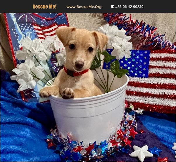 Hi! My name is Rosebud. My momma and 3 siblings were dumped in a field in Fresno, CA. We are safe now with our rescue in Oregon. I am a happy and now healthy pup ready to find my forever home. I'm up to date on my vaccines, microchipped, and learning to use my potty pads. I'm crate trained too! I'm very playful, and only sometimes get shy. I love my bed and my squeaker toys. I get along with other dogs, cats and humans of all ages. I'm estimated to be just shy of 4 months old and currently weigh 7lbs. I love to be held and will just melt in your arms. If you are interested in adopting me, please go directly to my rescues website at savingonepawatatimerescue.org to complete my adoption application. I'm excited to meet my new family! Love, Rosebud