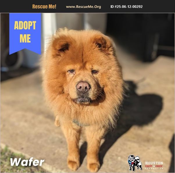 Wafer is a 4-5-year-old red Chow Chow with the softest coat, soulful eyes, and the kind of presence that feels both dignified and deeply affectionate. Quiet, clean, and affectionate once he trusts you, Wafer is a classic introvert: slow to open up, but incredibly loyal when he does. He's a snuggler - not just a lean-on-you kind of guy, but a 'flop in your lap and ask for ear rubs' kind of dog. He enjoys being brushed, lounging in cozy spots, and quietly keeping tabs on his people. - Real Life Teddy Bear - Hoping for adult people only home - No pet siblings please - A patient, confident handler with Chow experience - Someone who respects canine communication and wants a protective, loyal companion Wafer has done wonderfully with proper introductions, but he needs someone who understands the subtle cues of a protective breed. He thrives on consistency, structure, and connection. If you're looking for a quiet, devoted companion who will adore you completely - Wafer may be your dog. He's truly a hidden gem. **Wafer is being fostered in Texas. Paid transport can be arranged. Transport costs range from $200-400.** If you are interested in adopting, please complete an application @ https://form.jotform.us/41173109602142. Once approved, home visit and reference checks are also required. If you have further questions outside of this listing, please email [email protected].