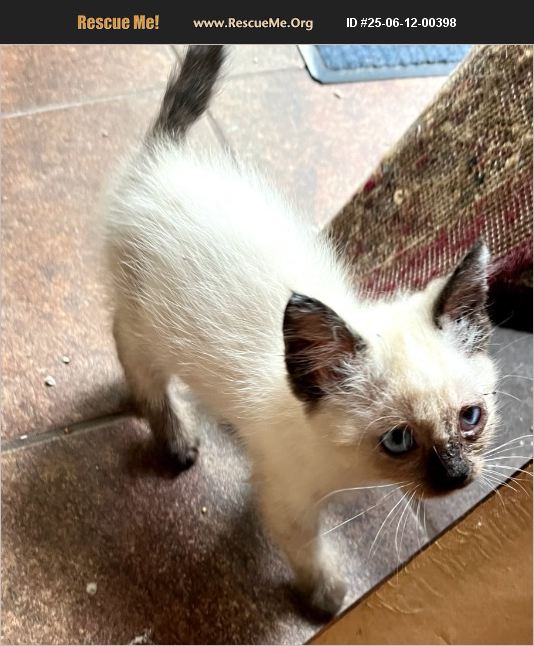 Kittens available for preadoption, and home going is 12-14 weeks once they are spayed/neutered, vaccinated against rabies, tested and microchipped. Meet Azure Ella! Like the clear Texas sky she was rescued under, Azure Ella is a 6-week-old Siamese seal point kitten with sparkling blue eyes that shimmer like morning light. Found as a tiny stray in the Rio Grande Valley, this brave little girl is already showing the world just how bright her future can be! With her elegant coloring, curious gaze, and frisky spirit, Azure Ella is always on the move-pouncing, exploring, and turning even a paper ball into a grand adventure. She's alert, clever, and full of the kind of mischief only a kitten can get away with. Azure Ella is ready to bring joy and light into her forever home. If you're looking for a little sky-blue sparkle in your life, she's your girl. (Not available for adoption until 12-14 weeks old.)