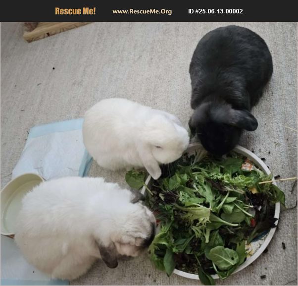 I have 3 bunnies, they are all bounded, around 3 years old. 2 males, 1 female, all fixed. No cages, FREE ROAM Indoor with AC only, no other animals in the home, must be willing and wanting to love them. They are amazing, so sweet and need attention. Nugget the female, has one health condition which is her eyes leak, and they must be cleaned every day, she is missing fur around her face from it, I don't have money to take her to the vet to get it fixed. Owning a bunny is a huge responsibility and requires being financially able to get them the exotic vet they need. These buns where my Ex's and he threw them out and I took them in. I love them dearly and I want them to find the best family for them. The vet bills are a lot just a heads up so please serious inquiries only. Here is a little bit about their personalities. Bunbuno is the black bunny, he is the most anxious out of the 3 and doesn't like to be picked up (he's previous owner was mean) but when he trusts you, he will gladly climb on top of you if you are on the floor. He will take snacks from your hand and mouth too and give you kisses. He is very adventurous even though he is anxious, he is very self-aware and loves to explore and climb on things, especially for food. He does not have his front teeth, I had them removed because they were crooked and grew too long and he wasn't able to shave them off because they were miss aligned. Like I said, vet visits can be costly, that procedure was 1,000. Shiro is the middle bunny, he is all white with blue eyes, he is what most people are drawn by, he is the chilliest bun, he is obsessed with pets and massages, you can pet him for hours and he won't move. You can pick him up too, but he still prefers the floor. He is very sweet. Nugget is the girl; she is the one with the gray ears. She is the fluffiest fluff ball in the world, she also loves to be given massages and head rubs, she loves giving kisses as well and loves moving her brothers from their resting spot so she could lie there. None of them are violent, it took me 1 year after getting them ti bond Nugget and Bunbuno together, I realized that they were both scared but slowly they started to trust each other and it was one of the coolest things ever, Shiro always got along with either one. Nugget was the one that would hump them, she still sometimes humps their face but its very rarely and its just to move them so she could flop. My biggest concern is her health and I want someone that could make sure she is healthy and get the care she needs. She is the strongest bunny I know, she has gone through a lot of trauma but I can give more info if you are actually wanting to get to know them and can take on this commitment. They each have their own personalities and if you have the time and money for them, they are worth it. Giving them up is not easy, but I want the best for them. They will stay with me until they find their forever family. They have an Instagram, I stopped posting years ago but you can see more there or contact me on there too. The Instagram name is LOSBUNS, If you have read this far, thank you. Also, this goes without saying but I still have to say it, yes they are cute but don't get them just because they are cute, they are so much more than that. (3