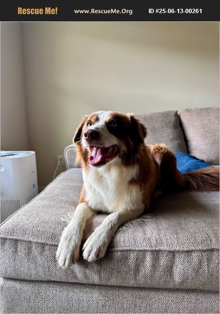 Todd (calling him that because he looks like the fox from The Fox And The Hound) is a sweet and cuddly boy. He resembles an Australian Shephard and we are guessing he is about 4-5 years old. He has done well with my 2 dogs he has met. He is very interested in my cats and has been gentle when meeting them. He seems to like chasing and barking at cars, especially large trucks and motorcycles so he should stay leashed when not in a fenced yard. I do not know about children, but think he would do ok with older kids that can respect his space. He can be cautious around new people, but warms up quickly when approached slow and calm. He enjoys his space and is not a big fan of being restrained (less is more kind of guy). He is really smart and seems to know sit and kennel. He may have been a farm dog previously as he is very active, so an active family would be best. Please contact for more information if interested A reference call to the new family's veterinarian will be done.