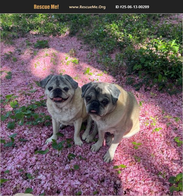 BONDED PAIR Mojo (female) and JJ (male) are a 12 1/2 year old bonded pair of litter mates. Mojo sees herself as the caregiver of the two, by cleaning JJ's face every night. She has, also, been caught pushing him away from his food bowl so she can get a little extra for herself. lol JJ is obsessed with all the attention he can get and has lots of energy for a 12 year young Pug. JJ will run, jump and climb, but draws the line at going down the stairs. Adoption fee is for both dogs as they are bonded and can only be adopted together. Both are spayed/neutered, microchipped, fully vaccinated and vetted. They are looking for the perfect family to enjoy their senior years with. They promise to keep you smiling! If you are interested in adopting these 2 love Pugs, please go to our website to file out an application. www.midatlanticpugrescue.org