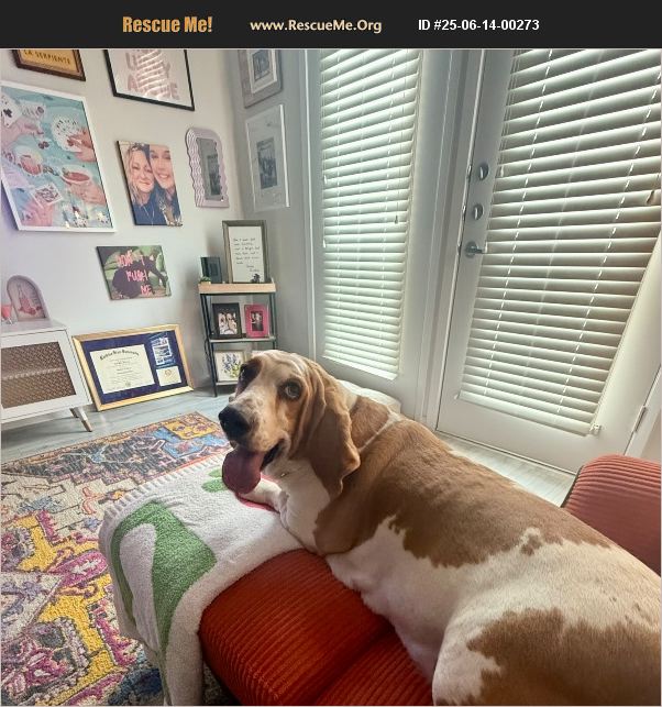 Callie is fully vetted (though not yet spayed), and she's a classic Basset through and through-64 lbs of lovable lap dog energy. She walks well on a leash, adores squeaky toys, and loves to snuggle right up next to you, especially at bedtime. I took her in recently while going through a divorce, thinking I was ready for a companion again, but I've come to realize that both Callie and I are having a hard time adjusting. Her previous home had both cats and dogs and a yard to explore, while I live in a downtown apartment and don't have experience with Bassets specifically-I've always had other breeds. If you think you might be interested in learning more about Callie, I'd love to chat. I'm located in Fort Worth. Thanks so much for your time!