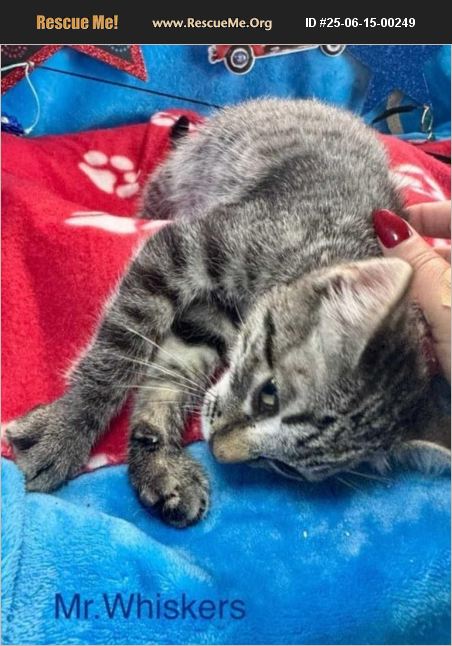 San Antonio, TX. Mr. Whiskers is a sweet, kind and affectionate boy who was raised to be an SOS Comfort Kitty/Emotional Support pet. He loves to be snuggled, carried around. He is playful, curious and mischievous. He will come home neutered, tested negative for FIV, FeLV, and Heartworm. He is microchipped. more information: deeATsoscatrescue.org