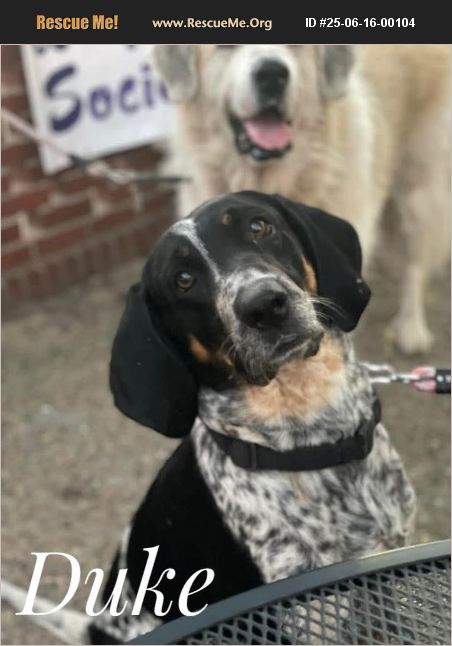 Duke is 2 year old bluetick coon hound. Duke has been with purple paws for just about 2 years now He is good with other dogs, cats and kids. Crate trained. Pretty well house trained Other than marking on occasion so he will require a belly band when indoors. He is neutered and UTD on all vaccinations. This sweet boy has the biggest heart and just wants the chance to be able to stay in a forever home and not having to keep moving around from foster parents. Duke will make a family or farm very happy he is a very well behaved boy that just needs a famil