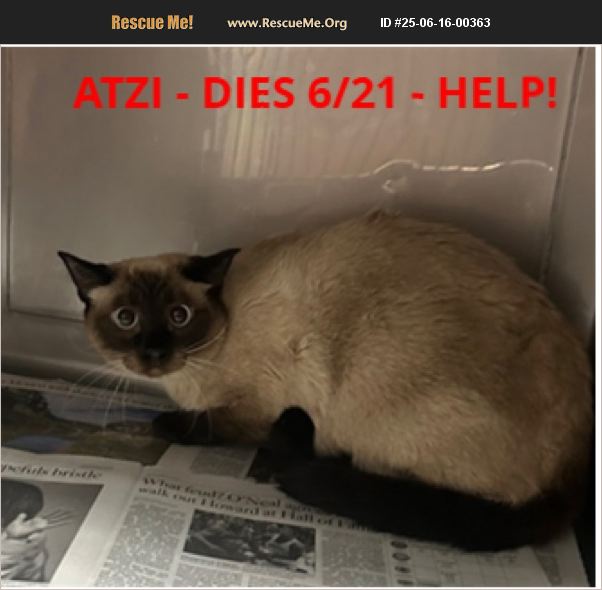 On June 21, Atzi, an intact female 6-month-old seal point Siamese kitten, will be euthanized at West Valley Animal Shelter. The owner surrendered her for aggression on 6/4/2025 and she was immediately placed on the red list. She had a single bite that broke skin. She is scheduled for euthanasia on 6/21/2025. She has no page on the website, and thus the public has no idea she exists. She's still young, and biting and aggression is often environmental, so getting her out of the shelter might see a true change in her demeanor. Spaying may also help. An experienced rescuer could save her life. Many cats are known to bite when under extreme stress, or even in play, and can be trained out of it. What can be a desperate communication measure or an innocent moment of roughhousing can be easily mistaken for aggression and vice-versa. AT 6-MONTHS OLD Atzi is still in the process of socialization and learning her limits. Bite inhibition can still be taught. Her last chance for rescue is the 20th. Atzi does not have a public page for adopters or rescuers to view, and she is a Y1 risk of euthanasia! The lack of a page online impedes her chances that someone with experience can locate her! It is a shame when salvageable kittens have to be euthanized because of an overwhelmed or frightened owner. It is a shame when salvageable kittens, even older ones, are euthanized because of an overwhelmed or frightened owner, and worse when there is no visible effort made to share her story! Do you know of anyone who might be able to HELP ATZI escape becoming another statistic? The animal control officer at West Valley 6/16/25 confirms she is still on the euthanaisa list. PLEASE consider taking her on. It looks like the owners were looking for an excuse to dispose of her. atzi.PNG FEMALE, SEAL POINT SIAMESE. Shelter: WEST VALLEY Age: 6 MOS Weight: 9 LBS Last day to take: 6/20/25 Scheduled Euthanasia Date: 06/21/2025. Euthanasia Reason - Reason for euthanasia: Atzi was owner surrendered on 6/4/25 for aggression. Atzi bit two people causing Level 2 bite on one person and Level 3 bite on the other person. At Risk Category: Y1 Available for New Hope, adoption, foster. Must sign 2 bite disclosures and behavior disclosure. CONTACT: 20655 Plummer St. Chatsworth, CA 91311 (888) 452-7381 https://www.laanimalservices.com/west-valley