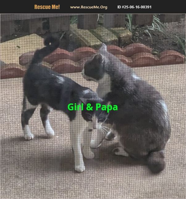 Grey Papa, one of two offspring: Girl (White/Black same markings as Dad), Boy (Grey w/Stripes). All very adoptable to loving single cat lover. The three have semi-adopted my porch bc I feed them, & may take a bit of time to adapt to a new environment, as would any animal. Loud noise scare them, but will come when I call, 'Grey's babies', to eat. Papa Grey, approx 3yo, is super affectionate, protective, & socializing his offspring to not be afraid; he was TNR'd approx. 11mos ago. He expects to come inside; I made him a special place, just for him. Grey's two offspring showed up within a few weeks of his return, with him one evening. I was able to trap them for TNR 3mos ago. The siblings are bonded, but can be adopted separately to loving homes. They are outdoor cats, but seem to want to come inside, when their Dad comes in during inclement weather... just slow to make the transition. Their reluctance could be that I have two of my own rescues who reside inside only.