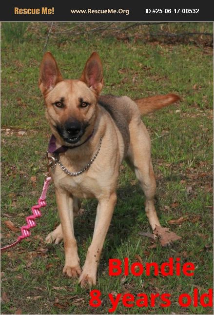 Blondie is a beautiful 8 year old German Shepherd/ Malinois mix that weighs 58 lbs. She will require training from someone who is very experienced with protection dogs. We have been working with her but she shows signs that someone began protection training with her but never completed it. She does have a strong alfa personality but could potentially make a good protection dog with the right person. We do not think she ever lived indoors so there has been many new things for her. Blondie has been doing great with training and is HOUSEBROKEN! She is not good with kids or cats and is showing dominance to other dogs so it would best if she is the only dog in the house. She is spayed, heart worm negative, fully vaccinated and dewormed. Her adoption fee is $250.