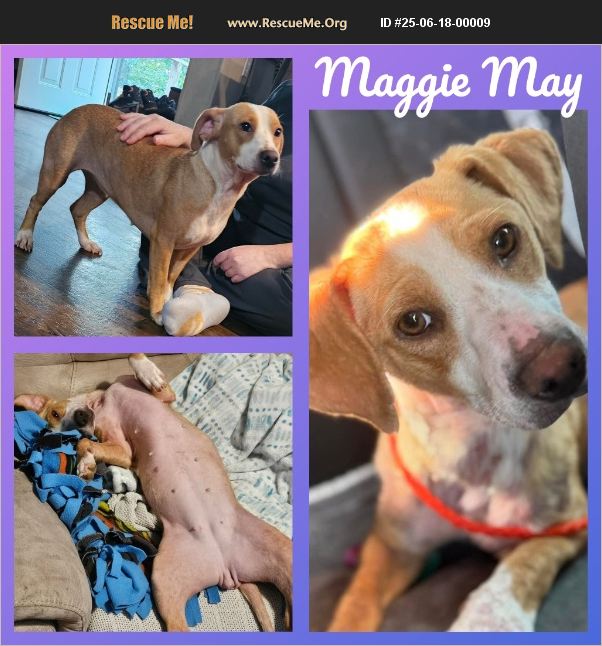 Meet Maggie May. She was rescued from Animal Control and had a horrible case of mange that has almost completely healed. She's estimated at 1-3 years old. She's a Beagle mix. She's dog friendly and kid friendly. She's such a sweet little girl who loves laying around the house and snuggling. We're not sure how she would do with cats. Located in Charleston TN.