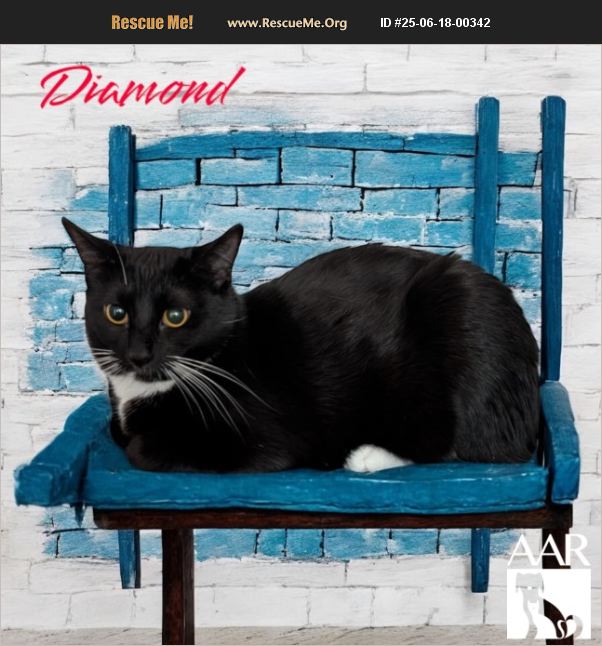 Diamond is an independent, confident, teenage kitten with a lot of personality, and she's ready to steal your heart! She's full of energy and spunk, likes pouncing on things that move, chasing toys, and demanding attention from her people. When she's worn out from playing, she loves to curl up for cozy naps and will appreciate some quiet moments with her favorite person. Diamond will need an adjustment time to get along with other cats or cat friendly dogs, and may do best as an only cat. She loves adults, but may do best with older children.