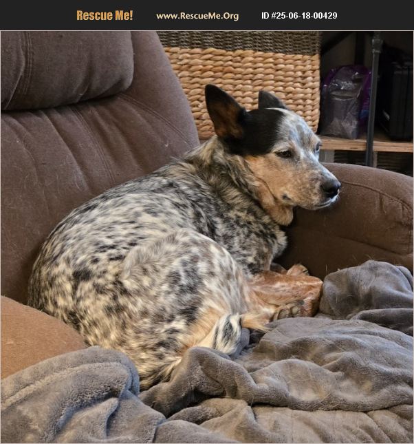 3 year 5 mo old Blue Blue Heeler girl in need of a new home due to current owner's declining health. She's a good cattle dog and a good companion. She can be dominant with smaller dogs. She is very sweet with all humans. She's special and doesn't deserve to be euthanized.