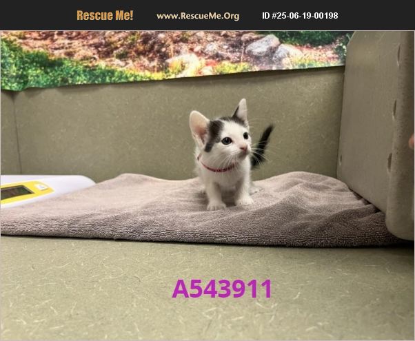 I am described as a female, white and black Domestic Shorthair. The shelter thinks I am about 5 weeks old. I weigh approximately 1.08 lbs. I have been at the shelter since Jun 17, 2025 and I am available for adoption now!