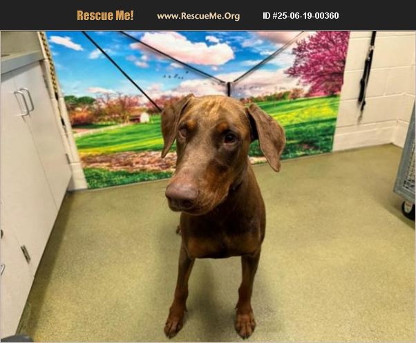 ID#A543890 I am described as a male, brown Doberman Pinscher mix. The shelter thinks I am about 2 years. I weigh approximately 74.00 lbs. I have been at the shelter since Jun 17, 2025 and I may be available for adoption on Jun 25, 2025 at 11:31AM.