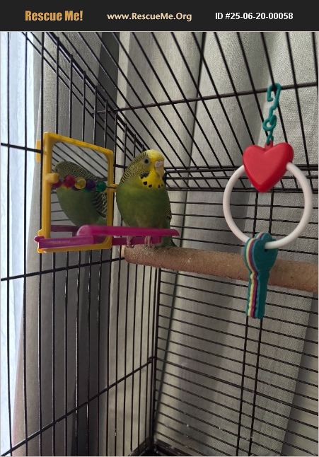 Olive is a three year old, green, parakeet. She is shy and sweet. She will warm up to anyone if they spend time with her. She shares a habitat with Buddy, another parakeet who I am also posting. It would be nice if they could stay together.