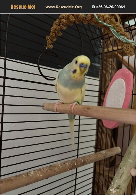 Buddy is a colorful, three year old parakeet. He was mostly white and blue when he was younger but has now grown in a lot of light yellow feathers where the white used to be. He is shy, but time spent with him, he will warm up. He shares a habitat with Olive who I have also posted. It would be nice if they could stay together.