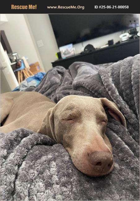 This is Bloo He is a 5ish year old Weimaraner. Looking to find a home for him that allows him to get his energy and anxiety out more. He is very well trained. Potty trained and knows several commands including: Sit, stay, lay down, place (to go to his bed), shake, be sweet (so he gently takes treat from your hand), heel (can be off leash walked just be aware of other dogs), and his release command is 'ok' which he uses constantly to eat, go out doors, etc. What he loves: -Hard bones to chew on -Comfy beds to lay in -Blankets to lay under and pull into his bed -Tennis balls -Fetch -Walks or lots of space to run around -His food What he doesn't like/other traits -Pets on face or head- occasionally he'll let you but mostly prefers neck, chest and back. -Alpha- he is an alpha dog and probably will not do well with another strong alpha. He has lived with kids, and other pets his whole life but needs good introduction and if they are high alpha they may not mix. -he is kinda leash aggressive towards other dogs. He takes commands well and will sit and stay when other dogs pass but gets whiny when they get near. When he is off leash this is not an issue- an example being he has been to dog parks off leash, dog daycare and boarding and free roams with other dogs and has no issues. He is just a high energy anxious guy who needs more time and energy put into him, We have put a lot of time, money, and effort into him if you can't tell by how good of a boy and well trained he is, but with two young kids and another on the way we are realizing that we may not be the best place for him to thrive.