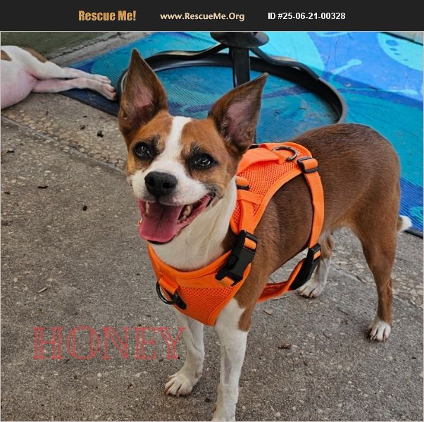 Meet our sweet, calm, affectionate, quiet, small (15 lbs) rat terrier (guessing) youngster. Honey gets along wonderfully with all the dogs in our Brooksville rescue. She has been spayed, microchipped, vaccinated and given flea, tick, and heartworm prevention. Her adoption fee is $250. Applications to adopt are at kathisk9s.org