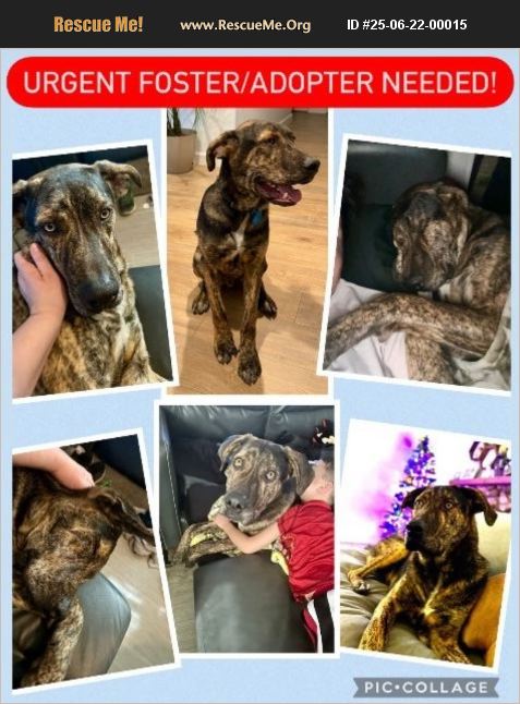 URGENT: Video included. This Handsome Boy Needs Your Help ASAP! Meet Brindle, a beautiful, sweet, and loving 1-year-old boy whose life is at risk. We aren't sure of his breed but we think Dutch Shepherd and Mountain Cur. If we can't find him a safe place, he'll be taken to a kill shelter, and we can't bear the thought of him not making it out alive. Brindle deserves so much more. He's: Great with kids. Housebroken. Neutered. Dog friendly. This is no fault of his own. The family who currently has him is surrendering him because they're moving and can't take him with them. He's only been with them for two months, and now his future is uncertain. We know there's a family out there who can give Brindle the loving forever home he so desperately needs. If you can: Foster, Foster-to-adopt, Adopt. Please don't hesitate to reach out to Jennifer with Pumpkin Pawz Rescue at +1 (714) 366-8170. Time is running out for this sweet boy. Let's rally together to save him! Please share and spread the word to give Brindle a chance at the life he deserves.
