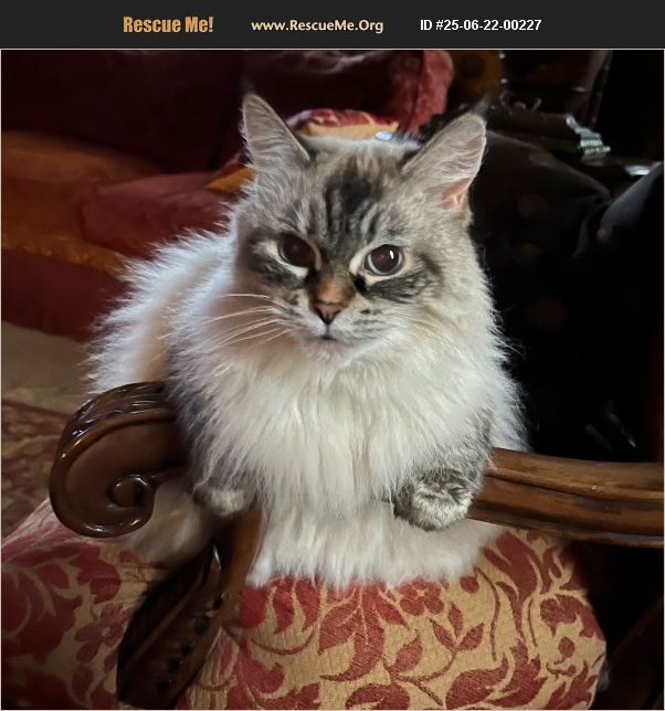 Mia is a beautiful well groomed cat. Creme fluffy med-long hair with black accents on face, feet, tail. Blue eyes. Front declaw only. Never been outside. Around small dogs and cats she ignores them. Loves adult people or older kid. She loves to be loved on, petted and brushed. Shes a good girl.