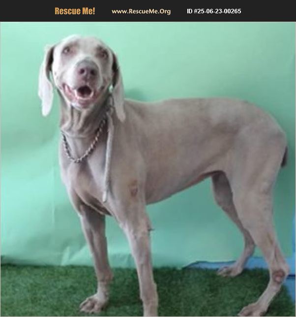 SPECIAL SENIOR WE HAVE A SENIOR!!! This graceful old gal named Sasha just came in from the Shelter. Owners said they were moving and could not take her with them. She was turned in as a 12 year old spayed female but the Vet on staff at Shelter feels she's more like 9 or 10. Either way she seems pretty healthy for her age. She has a couple hot spots we are beginning to treat. She has a docked tail and family got from a breeder at 8 weeks old. She is getting along with her female weim foster sister and grew up with lots of kids. We are looking for someone who would really love and cherish a nice senior girl. She rides well in a car and gets a little excited on walks. SHE LOVES TO GET OUT ON WALKS! She was walked by the kids a few times a week for a mile or so. She will pull slightly then calms down. Her previous owner says her goal in life is to be able to sit with family and watch TV at night. She slept her entire life outside in the backyard! Owner says she was not allowed in the house because his wife is not a dog person?!?!?!?! HUH? We'll be spending some time to get to know her but if you are interested she is fostered in the Santa Clarita area. Hit us up!! THERE IS NOTHING LIKE A SENIOR!!!!! Sasha is pending adoption with back up applications accepted.