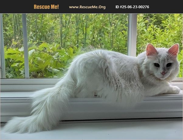 ATTICUS is a WHITE TURKISH ANGORA with amber eyes. He is 5 years old, has his claws, is neutered, up to date on vaccinations, FeLV/FIV negative, and microchipped. This handsome boy weighs a little over 13 lbs. Atticus came into rescue after his owners realized that their very busy work schedule did not work out well for this human connected and very sweet boy. They asked our rescue to help find him a home where someone is home a lot and can give him the love, affection and interaction he needs and deserves. His foster mom has quickly fallen in love with this regal and strapping boy. He is just the right amount of confident and comfortable in a new situation, and it is such a pleasure to see him strut around as if he's lived here for quite some time. When he wants to be around people, he can be a bit vocal about it, so it's best not to ignore him��%BD'��%BD|just saying. If vocalization gets on your nerves, he may not be the right kitty for you. Atticus loves it when his foster mom gives him the full on body massage which will typically involve him rolling over to get his belly rubbed too. When it's time to engage in some play time, he enjoys it when his foster mom floats DaBird around for him to catch. He shows off his hunting prowess by jumping up in the air to catch whatever is floating around. When he is done with that, he typically likes to hang out on the tall cat tree and observe what is going on around him. He can also entertain himself by looking out of windows to study the great outdoors. As far as cat compatibility is concerned, Atticus seems to be interested in other kitties, though that interest is not necessarily reciprocated by other felines. He has met his foster parent's own cats and is tolerated by one of their male cats, but older, docile, or small kitties seem to be intimidated by this strapping, confident and pretty much in your face cat. He might be okay with another cat of similar size, confidence, age, and breed with proper introductions, but he would also do well as a single kitty where he can get undivided love and attention from his human(s). Although his foster parents don't have dogs, he might actually enjoy the company of a dog who is known to do well with a feline companion. He should be fine with children. Atticus needed extensive dental work, which our organization took care of. He is a healthy boy who uses his litter box perfectly. Atticus eats both wet and dry food, but due to his lack of teeth the dry kibble should be very small for easier digestion. Ideally a wet food only diet would be most appropriate for him. ADOPTION FEE $400. FOSTERED IN MEQUON, WI.