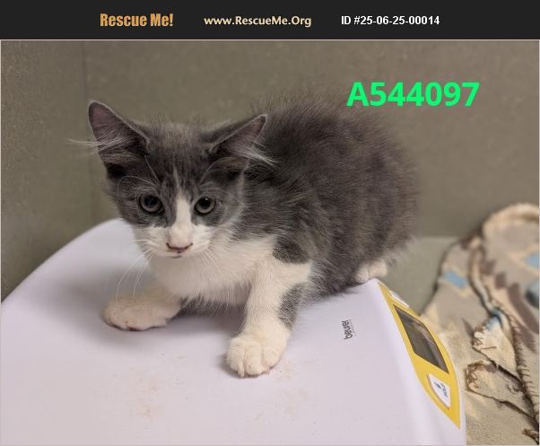 I am described as a male, gray and white Domestic Mediumhair. The shelter thinks I am about 13 weeks old. I weigh approximately 3.36 lbs. I have been at the shelter since Jun 24, 2025 and I may be available for adoption on Jul 01, 2025 at 1:33PM.