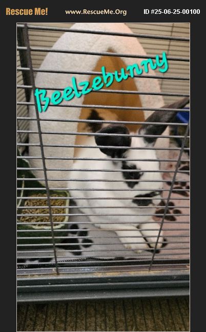 This is Beelzebunny, his was surrendered to us because the dog he was cohabitating with had a behavioral shift. For the safety of the sweethearted free roaming Beelzebunny he was given to our rescue for secure rehoming. He is fixed and waiting for his app to update his shots. To learn more about Beelzebunny and how to adopt him contact Derek at 919 446-3669