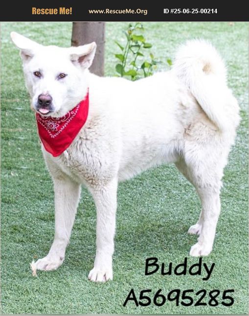 Buddy is in a high kill shelter in Castaic, California. Transportation information is available. Helper Dog Available For Adoption! Buddy is good with other big dogs, he is a helper dog in playgroup! Buddy, #A5695285, is listed as a 2 year old, 59 pound Siberian Husky/Great Pyrenees. Buddy seems to have basic obedience skills and is treat motivated. Buddy is happy sociable and friendly. Videos: https://www.facebook.com/reel/1263551711835559/?fs=e&mibextid=wwXIfr&fs=e https://www.facebook.com/reel/1060616369353320/?fs=e&mibextid=wwXIfr&fs=e