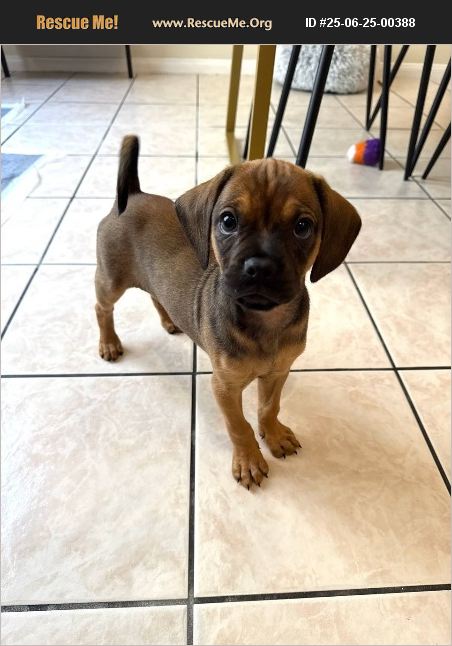 Sonny is a fun-loving, people-focused little pup who's ready to wiggle his way into your heart! At just 3 months old, this curious and affectionate pug mix is full of playful energy and sweet puppy charm. He's eager to meet new friends (both human and canine!) and is always up for an adventure - or a cozy nap with a chew toy. Sonny plays well with other dogs and would thrive in a home with a doggy sibling who can show him the ropes. He hasn't had much direct contact with cats, but he's shown curiosity - with the typical puppy enthusiasm and some chasey instincts. A dog-savvy cat who can handle playful puppy energy would be the best fit. Still a baby, Sonny is working hard on pee pad training and learning the basics of manners. He's about 60% of the way there and improving daily, especially when treats are involved! He's not quite ready for walks yet but will make a great walking buddy once he's a bit older and fully vaccinated. Sonny loves his toys, especially bones he can chew on while snuggled in a soft bed. He's affectionate and definitely has a Velcro side - he'd follow you around all day if he could! His foster is helping him build some independence, but he'll thrive in a home where he can get lots of love, attention, and gentle guidance as he grows. Ready to fall in love? Sonny's waiting to meet his forever family!