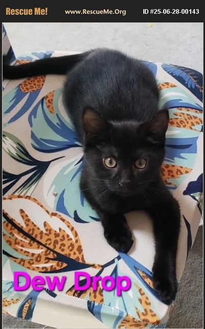 This adorable kitten is Dewdrop. She is a 4-month-old girl with a soft shorthaired black coat. Dewdrop is currently in our Kitten Nursery at our shelter with her sister Lemondrop. Her previous foster says 'Dewdrop is my timid one. She's not a lap cat and doesn't care to be held. She LOVES playing. Dewdrop is the bravest when it comes to stalking her toys or siblings. She gets the zoomies. Dewdrop does well with all my cats, I don't think kids or a dog would be a good fit for her. She does like to sleep on the couch next to you. I think she would do best with a sibling or having another cat in the house.' Dewdrop is vaccinated for age, microchipped, spayed and healthy. Her adoption fee is $225. If you would like to meet/adopt Dewdrop, please complete our online application at https://daws.org/daws-forms or stop by at our shelter Wednesday-Sunday between 12 and 6 PM. The DAWS shelter address is 147 Grassy Plain St. . Email [email protected] with questions or for more assistance.