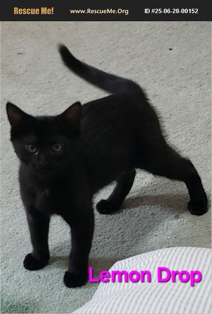 This adorable kitten is Lemondrop. She is a 4-month-old girl with a soft shorthaired black coat. Lemondrop is currently in our Kitten Nursery at our shelter with her sister Dewdrop. Her previous foster says 'Lemondrop is a little bit shy. She does warm up after a few pets. Though she may not be a lap cat, she loves playing and wants to be in the same room you're in. Lemondrop does well with my older cats. I don't think a dog would be a good fit. She loves her siblings and my oldest cat.' Lemondrop is vaccinated for age, microchipped, spayed and healthy. Her adoption fee is $225. If you would like to meet/adopt Lemondrop, please complete our online application at https://daws.org/daws-forms or stop by at our shelter Wednesday-Sunday between 12 and 6 PM. The DAWS shelter address is 147 Grassy Plain St. Email [email protected] with questions or for more assistance.