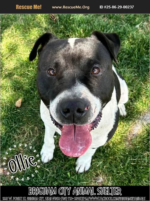 Meet Ollie! Pit Mix | 2 Years Old | 58 lbs Adoption Fee: $190 (includes neuter voucher) No cats, please! Ollie is the definition of a gentle giant. At about 2 years old and 58 pounds, this sweet Pit mix was found as a stray alongside his buddy Spud. Despite a few minor injuries, he's been nothing but loving and kind since he arrived at the shelter. Ollie is super tolerant and easygoing, even when Spud playfully harasses him! He's great with people and is looking forward to joining playgroups to see how he meshes with other dogs. Ollie doesn't need to be adopted with Spud, but he does need a cat-free home and a family who'll appreciate his mellow, affectionate nature. Come meet Ollie and see what a sweetheart he truly is! **All adoptions are upon approval of the adoption application only** Shelter Hours: Tues-Fri 12-6pm Brigham City Animal Shelter 1220 W Forest St, Brigham City, UT 84302 (435) 723-1231 https://www.facebook.com/brighamcityanimals