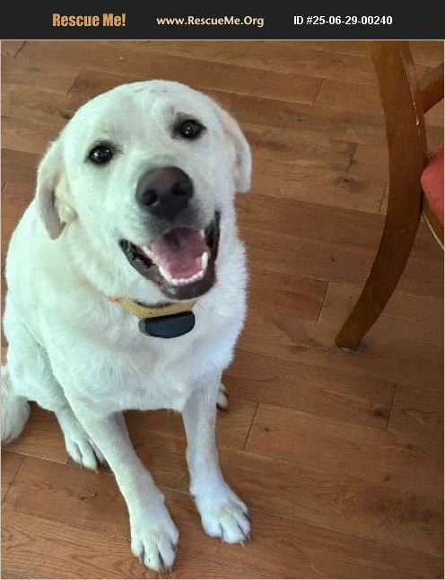 Year old male white/yellow lab very sweet tempered. He is fine with dogs cats chickens kids and adults. He is smart and play motivated. He learns quickly and knows basic commands. He is a big boy with a big heart. Very good natured. He would be perfect for a family with elementary school age kids to play with or someone with other dogs he can be friends with.