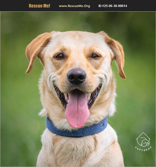 Blondie Labrador-type mix, approx. 1 year old, around 20 kg Arrived: June 2, 2025 - found in the village of Jino�%8Dany Hi, I'm Blon�%8F��k, and it's starting to look like my owner got rid of me. It's been over two weeks, and no one's come looking. I wandered the area for several days before I was finally caught in Jino�%8Dany. Sadly, it's becoming quite trendy to get rid of dogs by driving them far from home and dumping them. There are several of us here at the shelter with that exact story. I'm a very sweet boy. I don't always communicate perfectly with other male dogs - I can be a bit clumsy and rude - but I'm not aggressive. I absolutely adore female dogs, and even the tiniest 1-kg Chihuahua here can boss me around. And honestly, I don't mind being a bit of a pushover. �٪� Blondie is a beautiful young dog who, unfortunately, knows a human hand not only as a source of affection but also as a source of punishment. He is gentle, handles well, and loves female dogs. He's clean in his kennel and doesn't bark unnecessarily. We're not sure how he would do in an apartment, and we haven't tested him with small children yet - but he shows no aggression toward people. He pulls on the leash and will need training and, most of all, an active human partner who can provide him with plenty of exercise. He would be very happy to have a doggy girlfriend as a companion. Blondie will go to his new home vaccinated, microchipped, and dewormed.