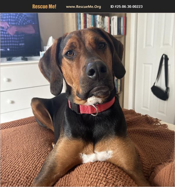 Harlan is a 3-year-old hound mix (Wisdom Panel Results: 53% American Foxhound, 26% Plott Hound, 19% Treeing Walker Coonhound, 2% Bluetick Coonhound) I rescued after he was abandoned on the side of the road. He's sweet, loving, and full of energy-especially when it comes to tracking. I had a DNA test done and confirmed his hound background, which explains his strong instincts. He loves to be outside and is always eager to follow a scent. Sadly, we're no longer able to provide a safe or suitable environment for him. Our fence isn't high enough to contain him once he's caught a scent, and between my mother's and my health challenges, we can't safely manage his energy level. Even with a prong collar, he's pulled hard enough to knock us over. It's not his fault-he just needs a better fit. He's up to date on all vaccinations and I have all his paperwork. I'd love to see him with someone who has a secure yard-or even a family that hunts, has horses, etc-where he can thrive. If there's any help you can offer, I would be so grateful. I just want to make sure he ends up somewhere safe and loved.