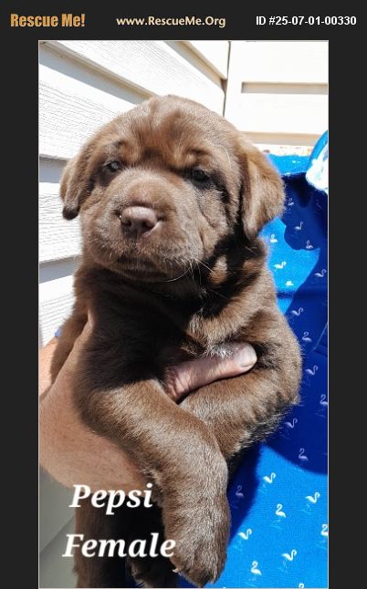 Pepsi is a gorgeous dark chocolate Lab and Shar-pei mix. She was born May 18. Pepsi is a sweet sweet, happy, playful pup. She's ready to add so much love to your life! She has had her first vaccinations, been dewormed, vet checked and microchipped. Her Mom is a medium size Lab-Sharpei mix dumped by her owner just days before giving birth to Pepsi and her 4 siblings. We believe the pups will be medium size also. Adoption fee is $300. $50 is refunded to you after you have her spayed when she is old enough. (REQUIRED) For information or an application email [email protected] or text 517-617-6277