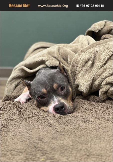 Gray pit bull, walked into friend's garage late one night and looked like she had been abused or a bait dog and had also recently given birth. We took her to the vet where she received services for wounds and scratches and hasn't been better. She is a sweet heart, sits at your feet, loves people, outside potty trained, and hasn't barked yet. Super quiet and attentive, calm demeanor. Needing to place her with a loving family who can give her the love and affection she gives